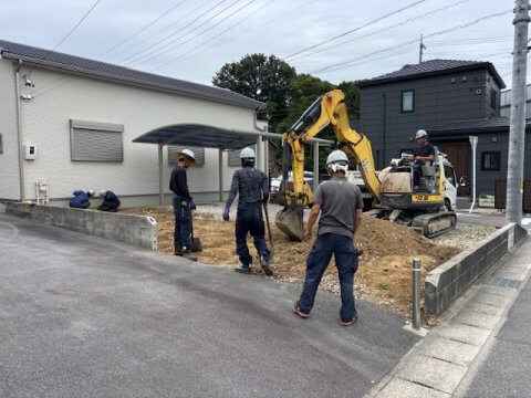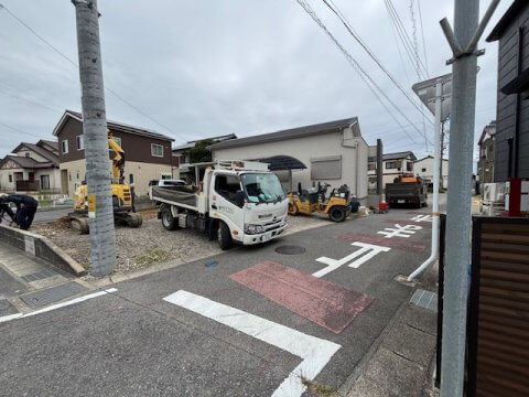 現場に6人・監督さん・ダンプで材料運ぶ人