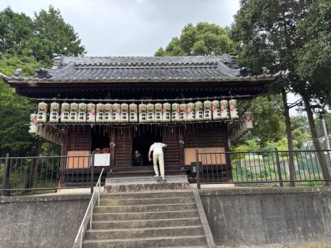 拝殿に提灯つけて