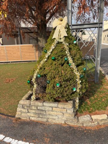 小幡建設本社の入口の木がクリスマスツリーになりました。