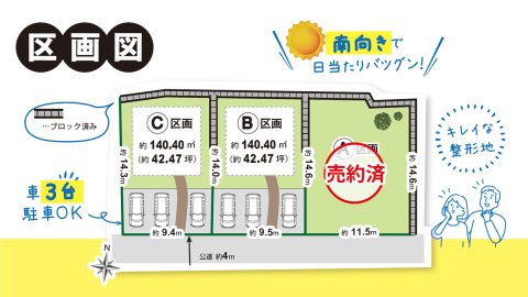 全区画42坪以上!南向きで日当たり抜群